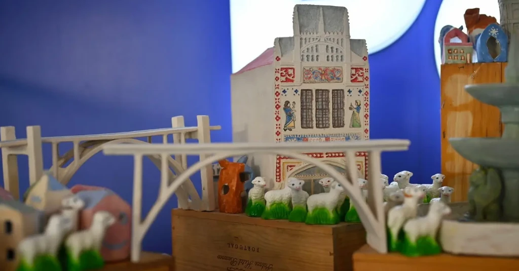 O presépio em exibição resgata a essência dos antigos montadores de presépios do Porto, uma arte que remonta ao século XIX e que, por décadas, animou as ruas e as casas da Invicta. Diferente das representações clássicas com palmeiras e desertos, este é “à moda do Porto”: uma maquete detalhada onde a manjedoura de Belém se ergue entre réplicas minúsculas da Câmara Municipal, da Estação de São Bento com os seus azulejos, da Capela das Almas e da mítica Livraria Lello. Torres sineiras, pontes sobre o Douro, barcos rabelos e varinas – figuras tradicionais da cidade – entrelaçam-se com os pastores, os Reis Magos e a Sagrada Família, criando uma narrativa visual que funde o sagrado com o profano, o eterno com o local.